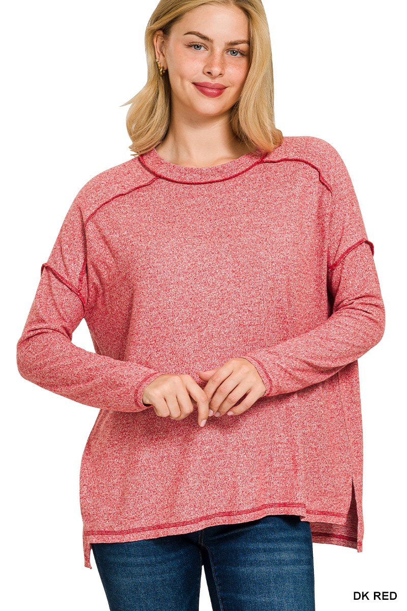 Zenana Full Size Melange Hacci Exposed Seam Hi-Low Tee Plus Size