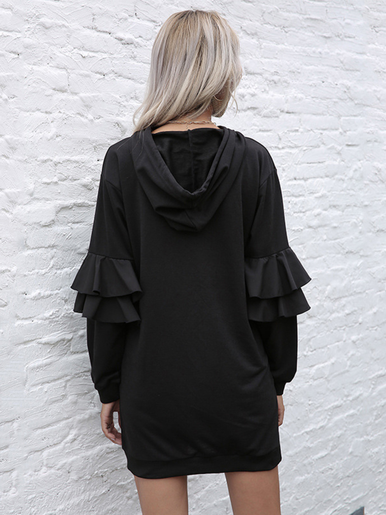 Ruffle Long Sleeve Hooded Mini Dress
