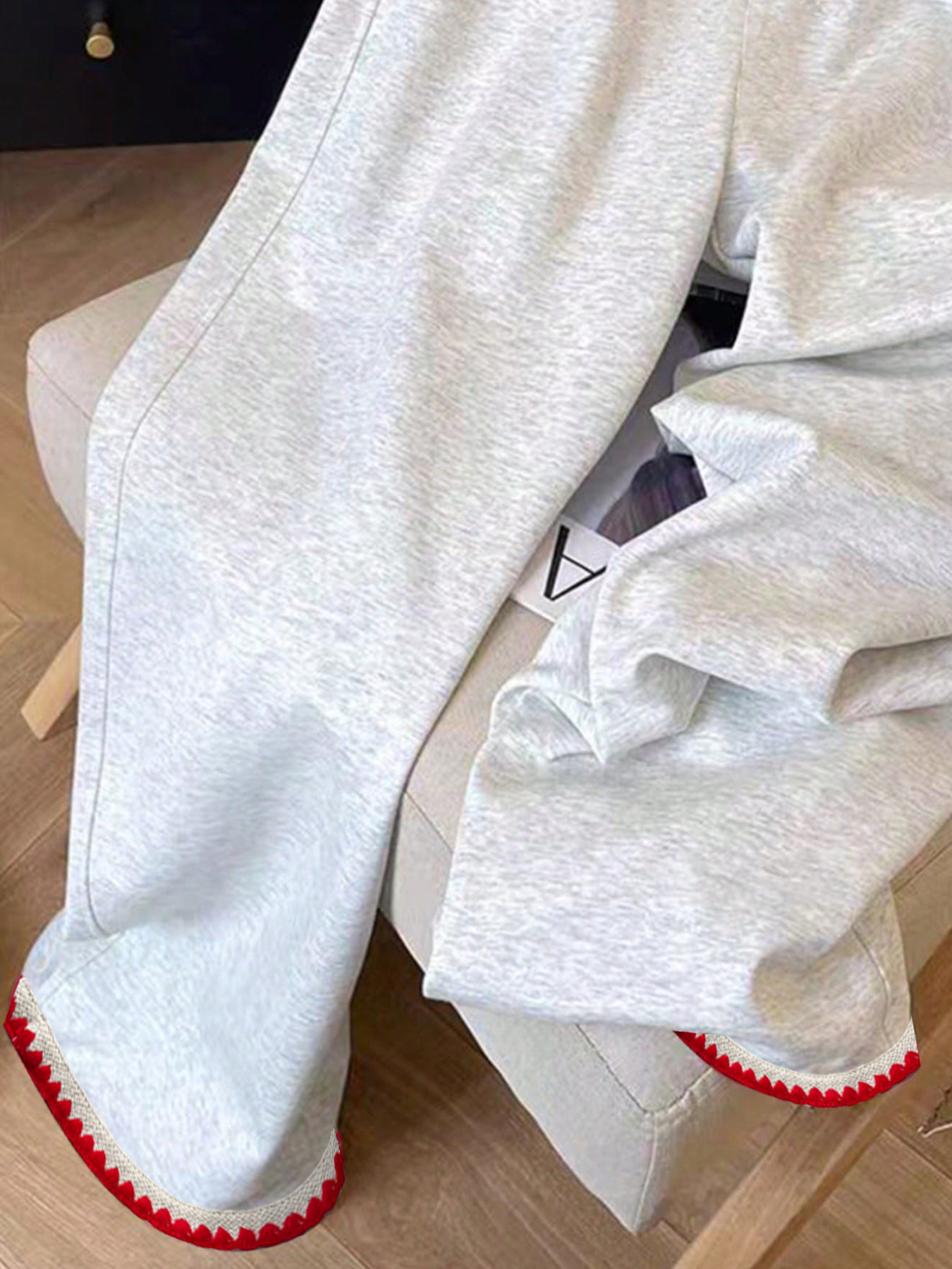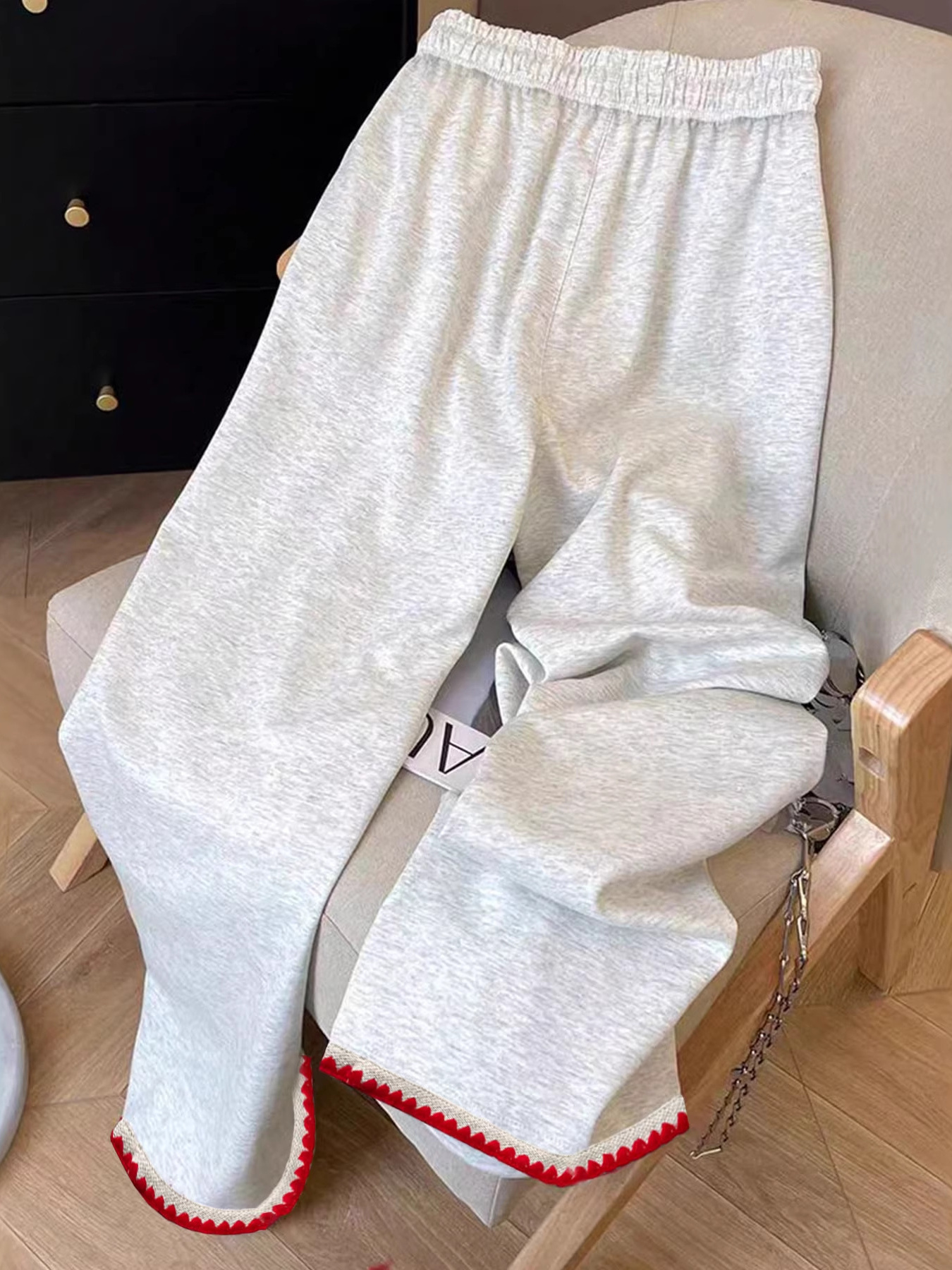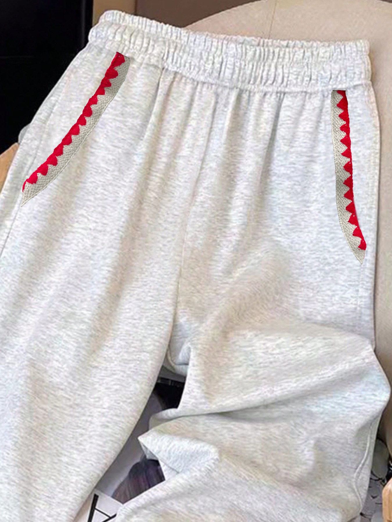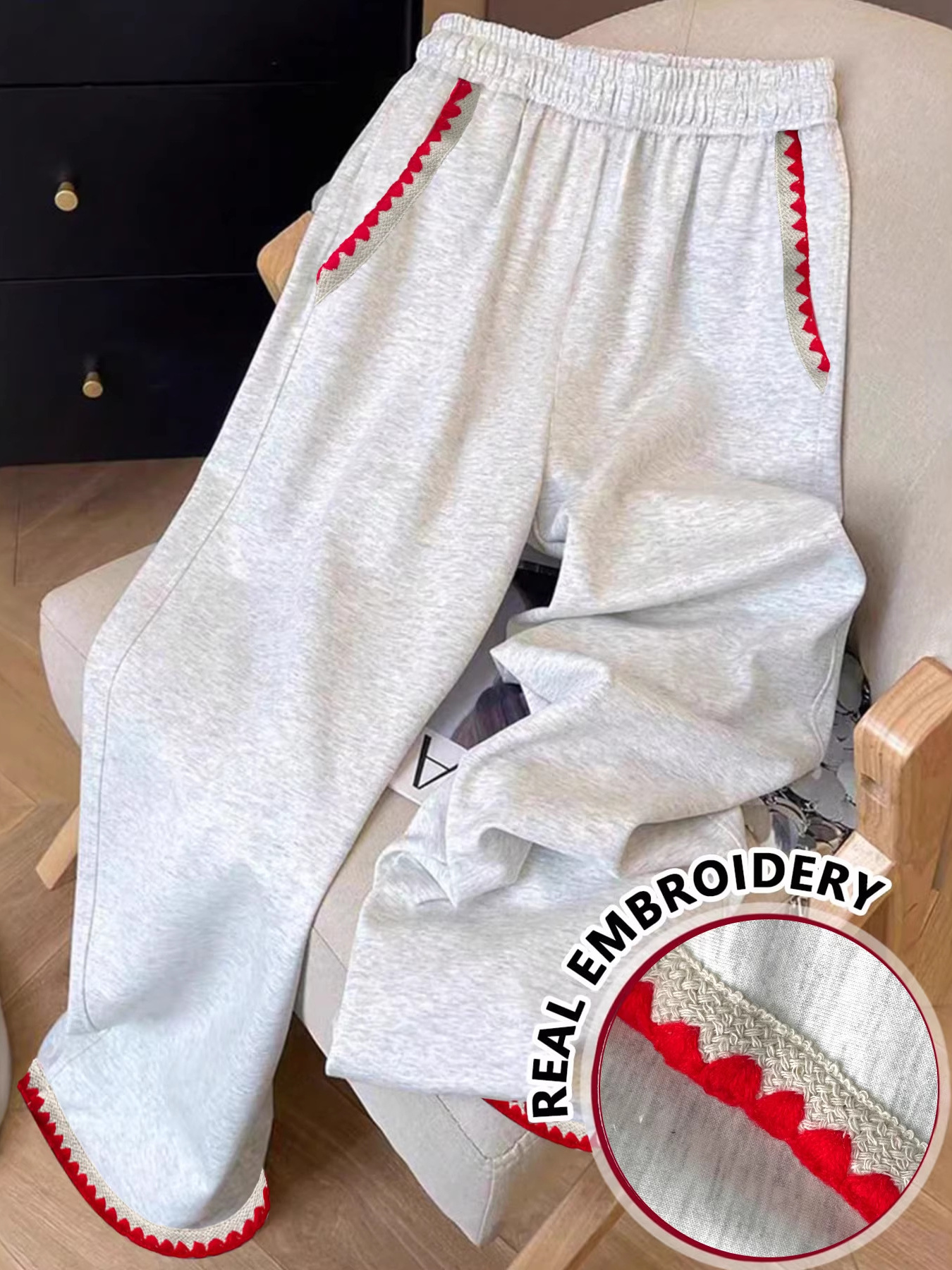 Casual Loose Fit Embroidered Trim Pants