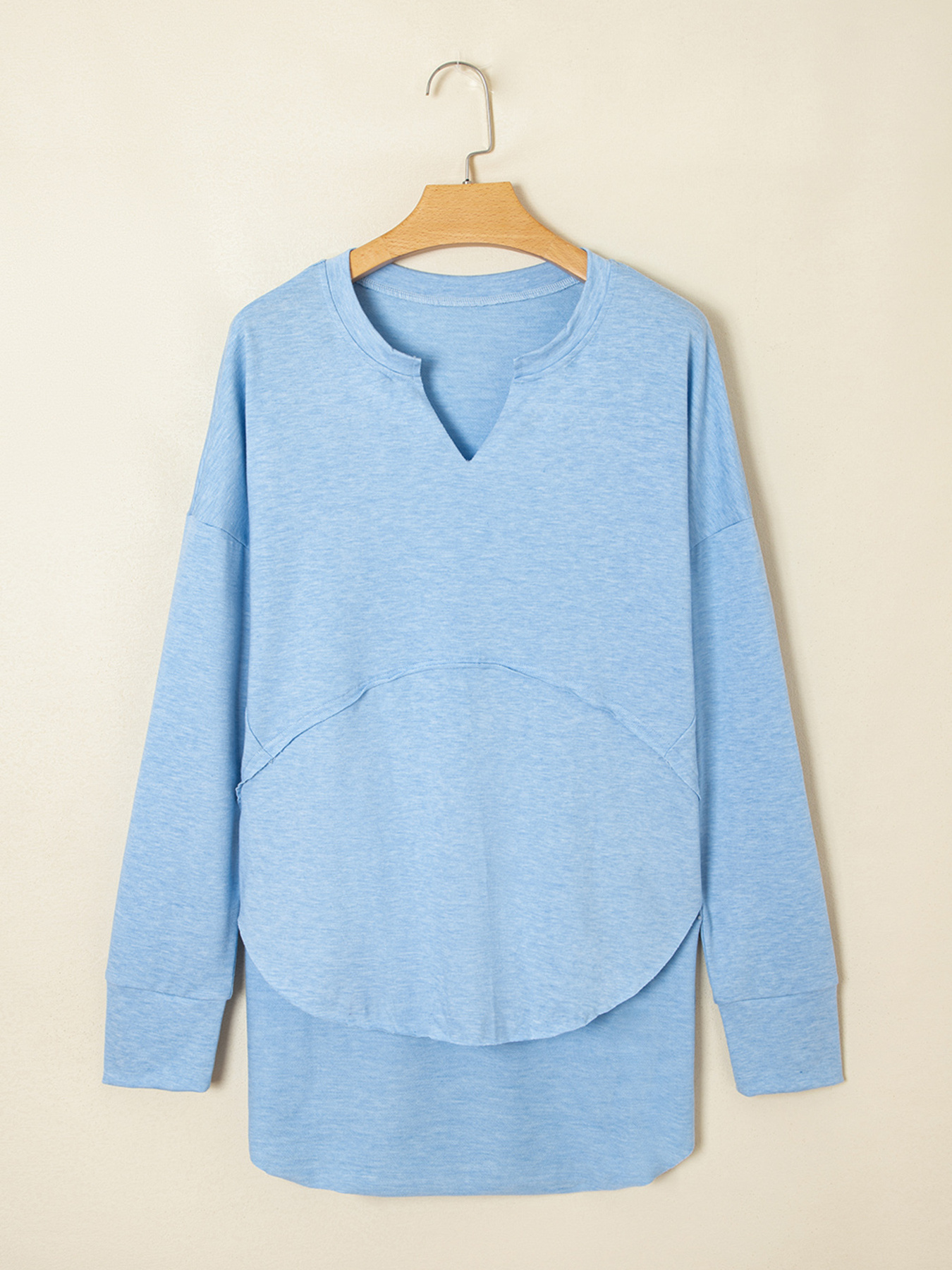Notched Terry Long Sleeve Top