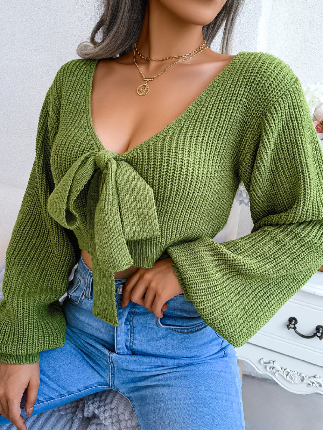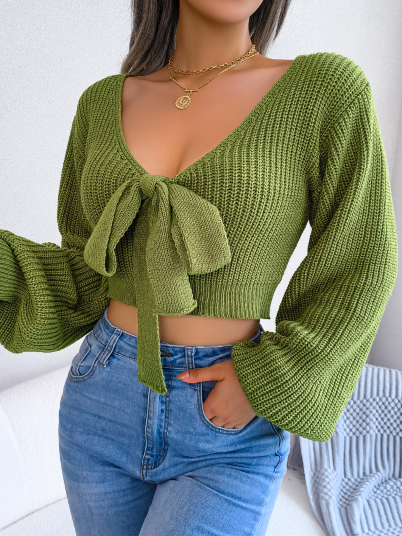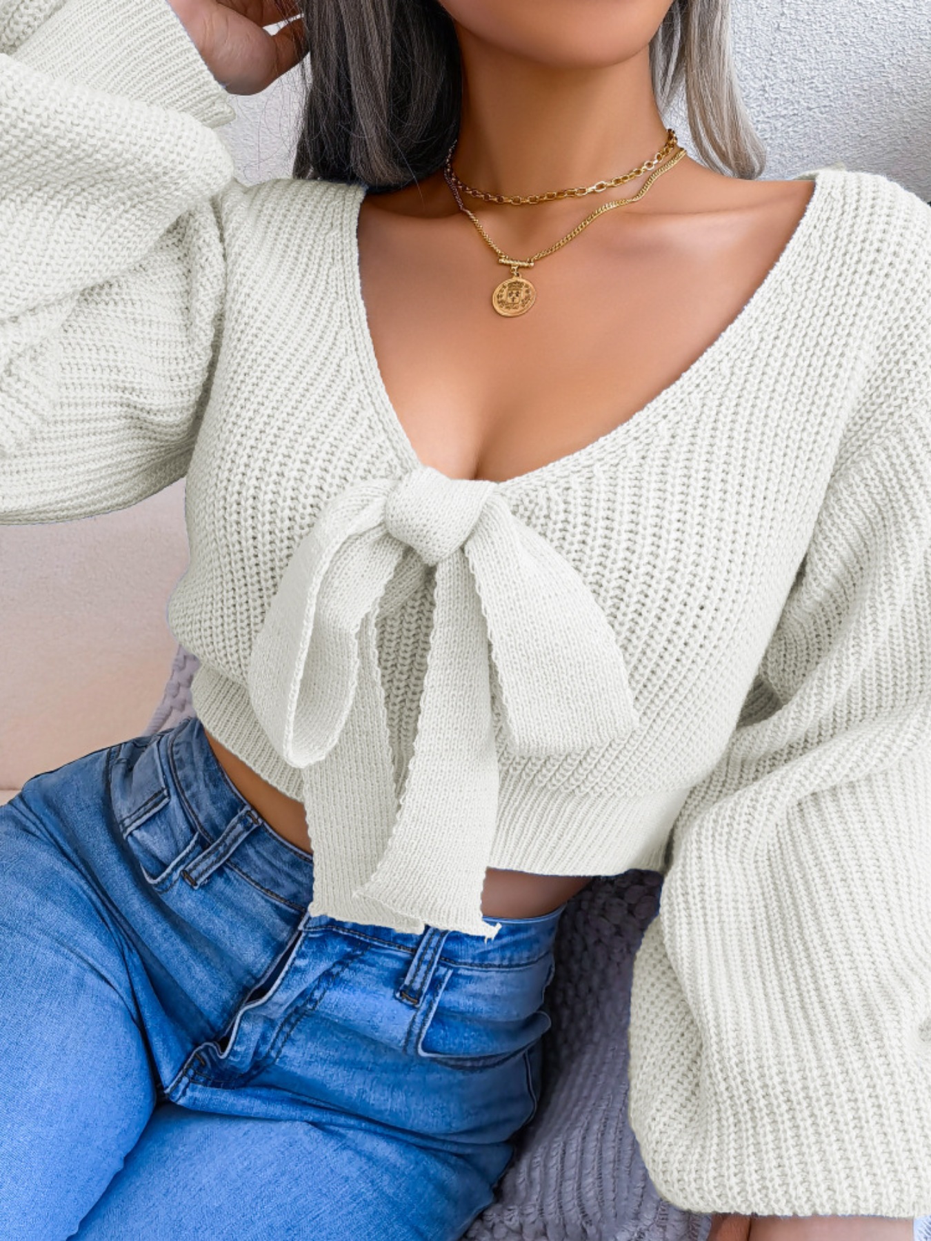 Tie-Front Cropped Sweater
