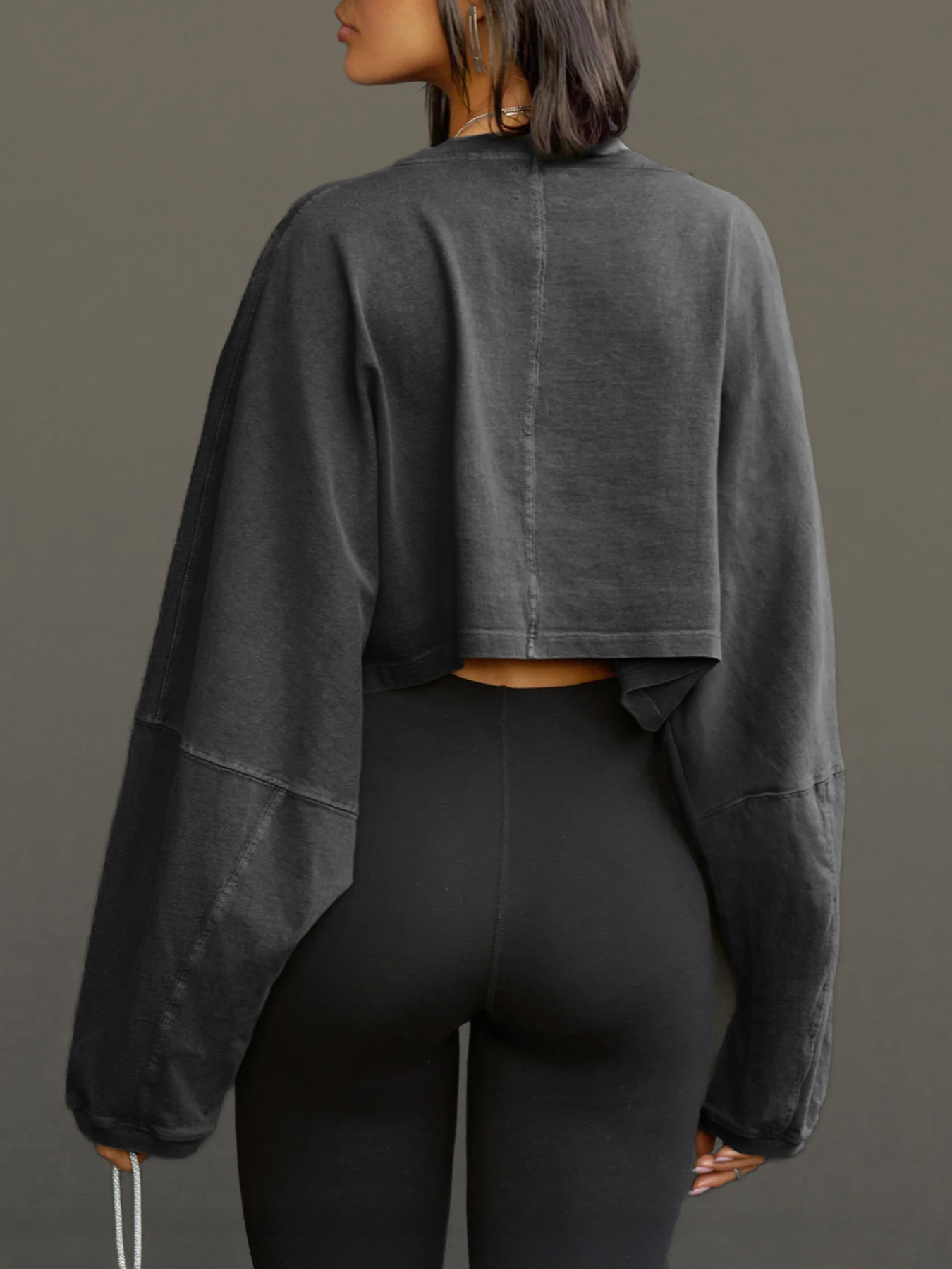 Round Neck Long Sleeve Crop Sweatshirt