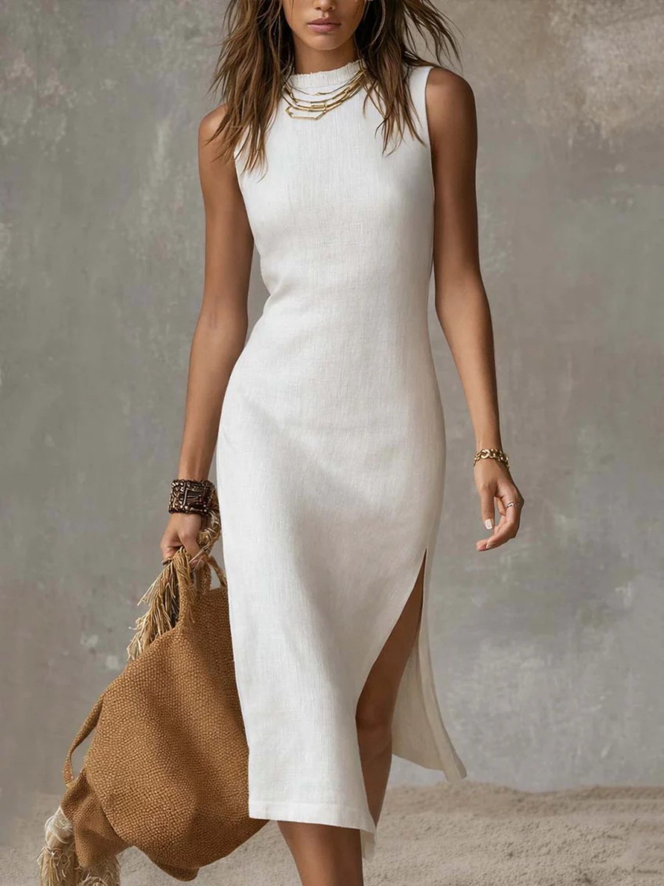 Full Size Sleeveless Mock Neck Slit Midi Dress Plus Size