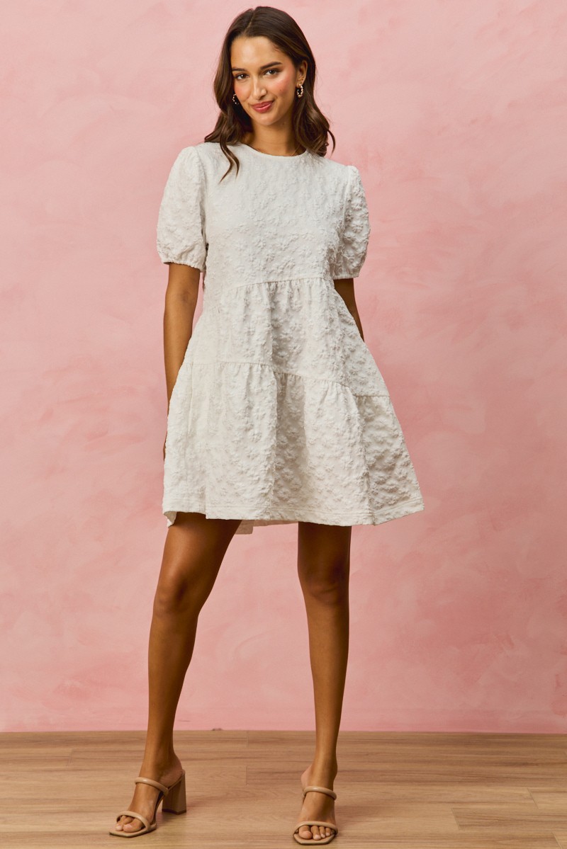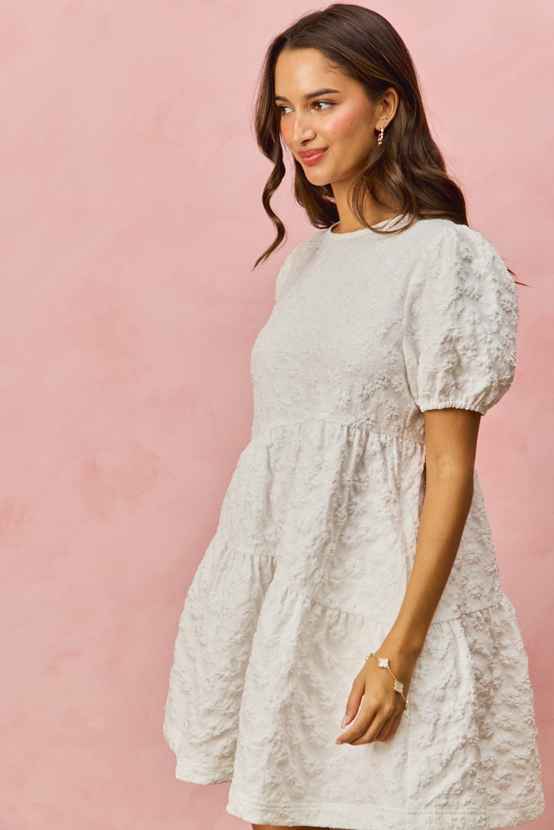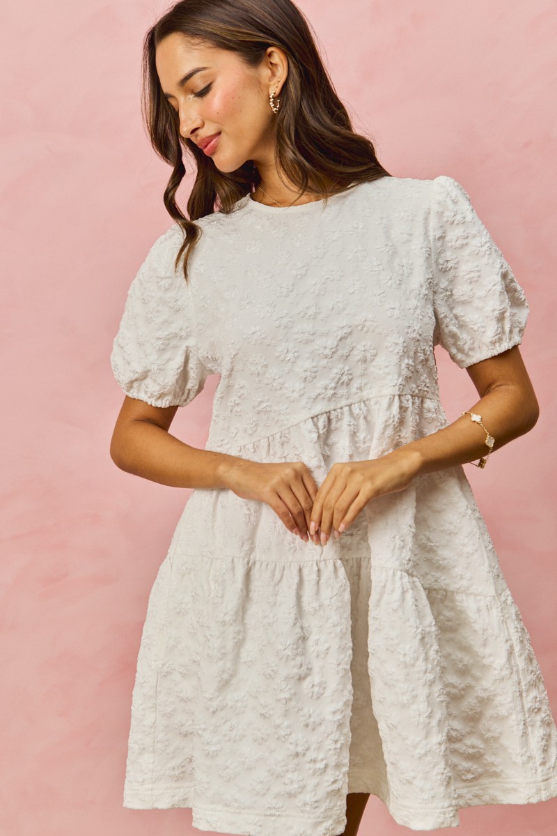 So Me Floral Jacquard Diagnol Tiered Short Mini Dress
